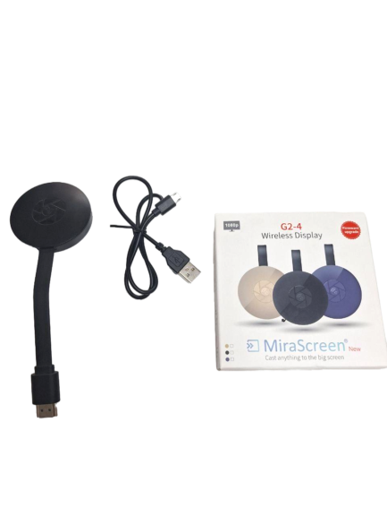 دانگل HDMI مدل G2-4 یک سختافزار کوچک و کارآمدی است که تلویزیونهای عادی را به مدل هوشمند تبدیل میکند. وظیفهی اصلی آن انتقال داده ها از طریق Wi-Fi به تلویزیون است. فرستندهی تصاویر میتواند موبایل، لپتاپ تا تبلت باشد . این دانگل، بهوسیلهی یک خروجی HDMI، به انواع تلویزیون، مانیتور و یا پروجکتور متصل میشود. ورودی Micro USB تعبیه شده در این دانگل، منبع تغذیهی آن را فراهم میکند. در نهایت، این دانگل نقش یک رابط بین موبایل، لپ تاپ و تبلت را با تلویزیون و یا مانیتور را ایفا میکند. شما می توانید برای ارائه مطالب خود و یا دیدن فیلم و بازی و... از این دانگل استفاده نمائید . این دانگل HDMI دارای پردازنده AM8252 و دارای رم 256MB می باشد و کارکرد AirPlay , Miracast , DLA دارد لذا میتواند کیفیت بالای داده هارا تا کیفیت Full HD و 1080p بدون هیچ گونه تاخیر و لگ از گوشی موبایل یا تبلت و یا حتی لپ تاپ ها به تلویزیون و مانیتور های دارای HDMI منتقل میکند . دانگل G2-4 قادر است فرمت های ویدئویی MKV, WMV/VC-1 SP/MP/AP, MPG, MPEG, DAT, AVI, MOV, ISO, MP4, RM, H.265, live video 8/9/10, as high as 1080P را پشتیبانی کند همچنین فرمت های صوتی MP1/MP2/MP3/WMA/OGG/ADPCM WAW/PCM WAW/AAC و فرمت های تصویری GIF/JPEG/BMP/TiF/JPG/TIFF را نیز پشتیبانی کند . این دانگل قابلیت اتصال به سیستم های عامل اندروید نسخه 4 به بالا و IOS 6.0 را دارد . شما می توانید از طریق گوشی های اندروید خود با گزینه ی Smart view از طریق wifi نام دانگل را پیدا کرده و به آن متصل شوید و سپس تصویر گوشی موبایل خود را بر روی صفحه نمایش گر خود مطابق با کیفیت روی گوشی موبایل خود خواهید دید . برای کاربران آیفون اپل گزینه ی Screen Mirroring این کار را انجام خواهد داد . همچنین می توانید با استفاده از دانلود برنامه Screen mirroring و یا برنامه های مشابه به این دانگل متصل شوید . در ضمن این نکته قابل ذکر است که می توانید در هنگام اتصال از دیتای گوشی خود جهت اتصال به اینترنت نیز استفاده نمائید